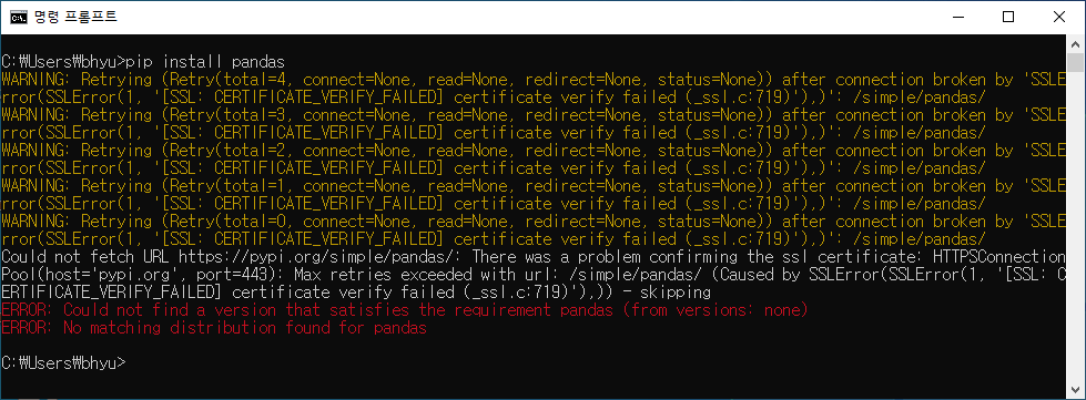 --trusted-host 옵션을 통해 해당 설치 오류는 간단히 해결할 수 있습니다.