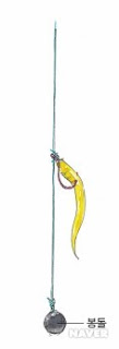 바늘에 봉돌이 함께 붙어 있는 모양이다. 아주 편리하고, 초보자가 운영하기에 편리하다. 다만 밑걸림에 주의해야 한다.