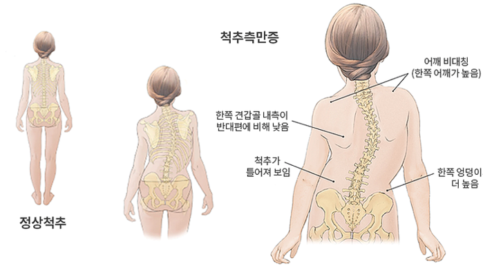 척추옆굽음증 이라고도 불리는 이 척추 측만증은 선척적으로 오는경우와, 후천적으로 만들어진 경우가 있습니다.