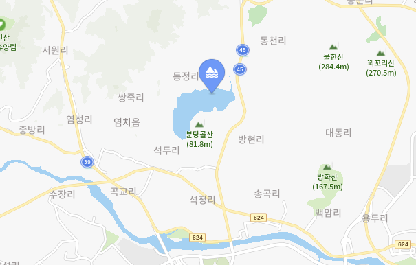 충남 아산에 있는 중간 규모의 저수지, 염치저수지(염치지)입니다