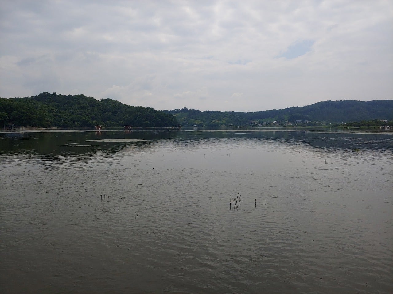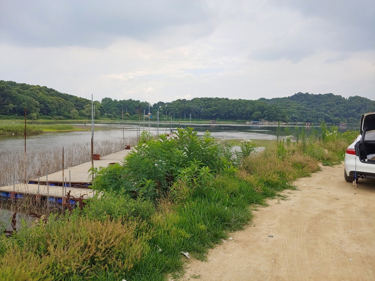 2020년 7월, 수심이 얕습니다. 물에 들어가서 루어/플라이 하시는 분들이 많습니다.
